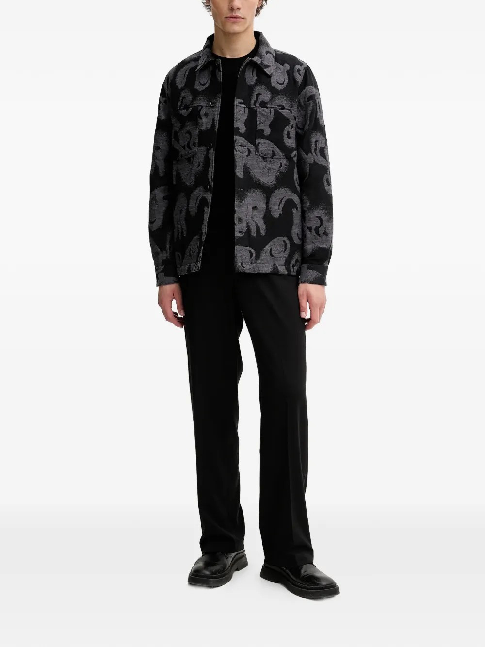 patterned chest-pocket overshirt