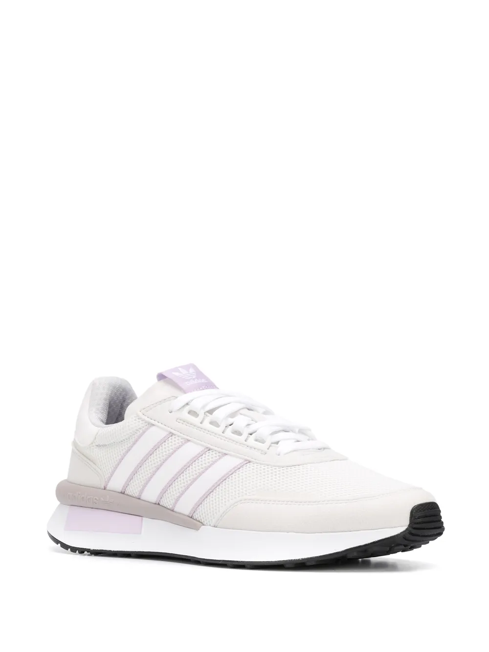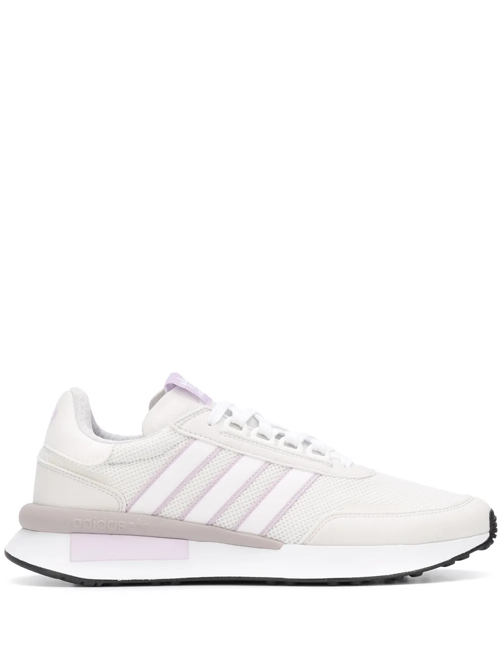 메시 패널, 시그니처 아이콘 스트라이프, 뒤축에 브랜드 로고, 신발 혀의 로고 패치, 앞면의 레이스업 스타일, 둥근 모양의 앞코, 고무 소재의 밑창.