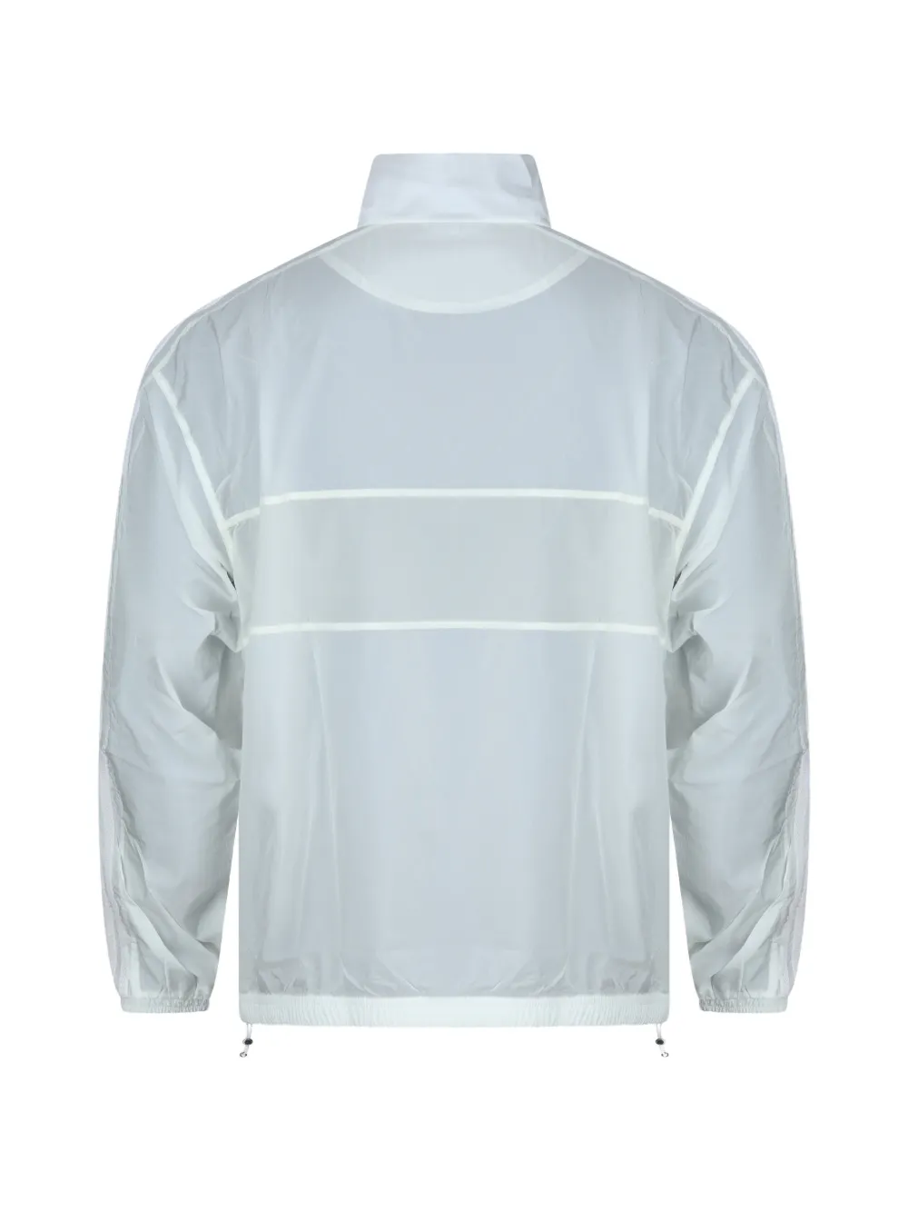 white ripstop texture logo print to the chest high neck front zip fastening long sleeves elasticated cuffs elasticated drawstring hem drawstring hem