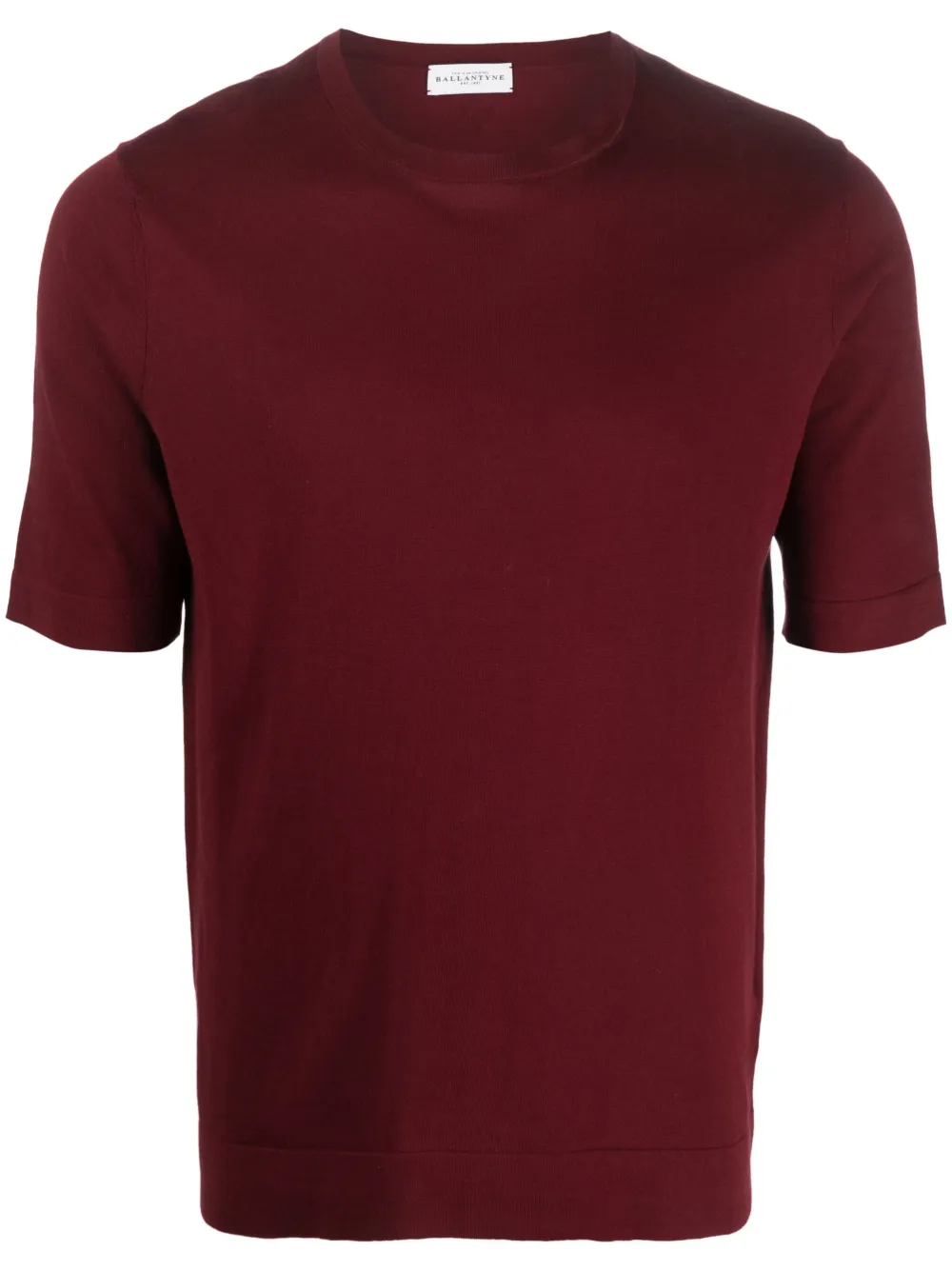 다크 레드, 코튼, 신축성이 좋은 저지 니트, 크루 넥, 반소매, 직선형의 밑단.