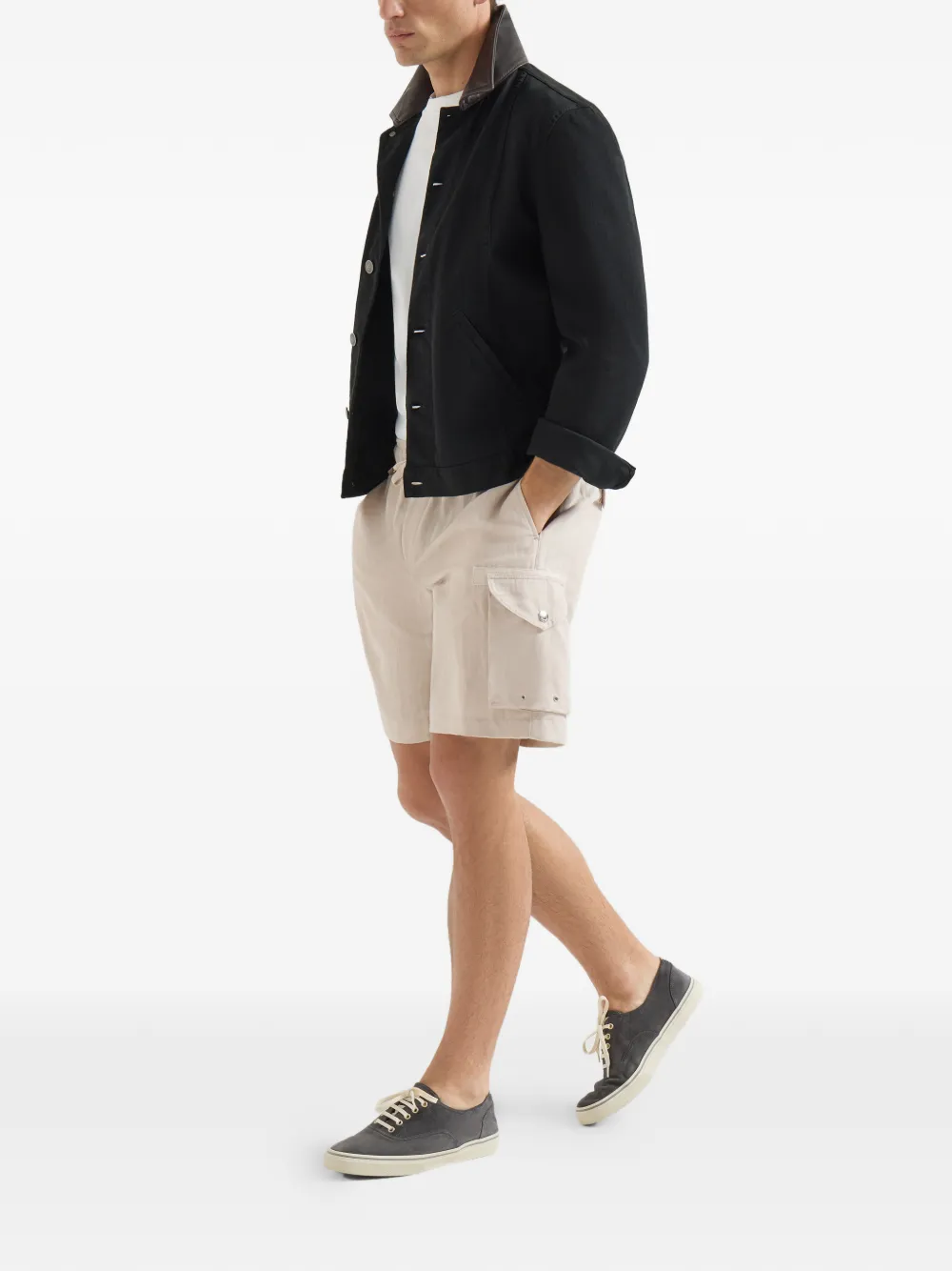 드로스트링 앤 카고 포켓 리넨 앤 코튼 버뮤다 쇼츠
