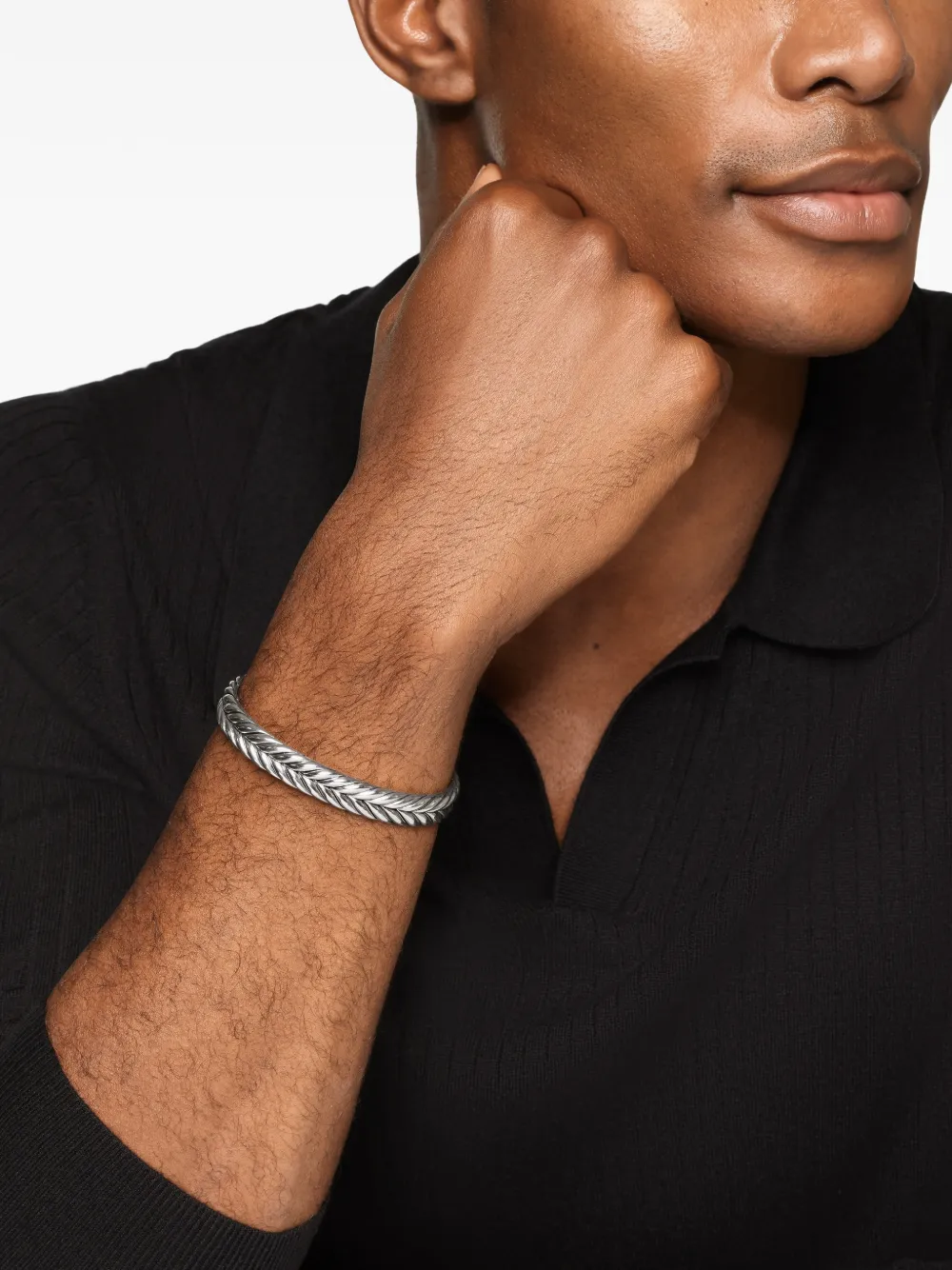 이중 나선 구조가 특징인 셰브런은 하우스의 시그니처 모티프인 케이블 디자인을 거울처럼 마주 보게 형상화한 디자인입니다. 고대의 V자형 디자인에 현대적인 세련미를 더했습니다. 정교한 소재, 깊이 있는 컷팅, 정확한 각도, 그리고 빛과 그림자의 대비를 통해 탁월함을 향해 나아가는 역동적인 에너지를 표현합니다. 럭셔리한 외관과 일상적인 실용성을 결합하여, 시대를 초월하는 가치와 다채로운 활용성을 선사합니다.