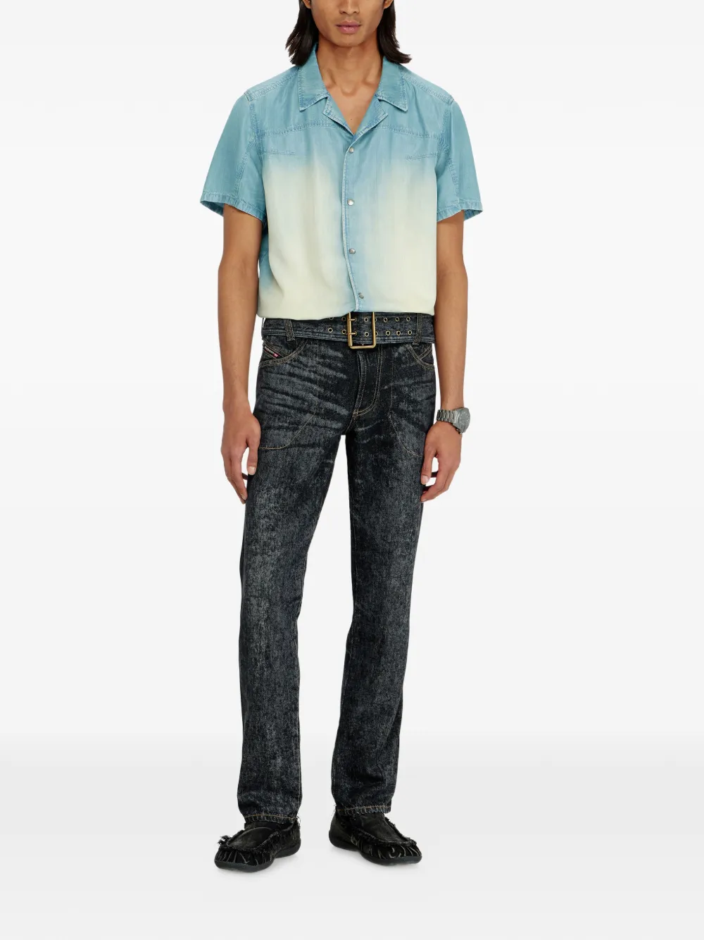 - 메탈 버클 일체형 데님 벨트