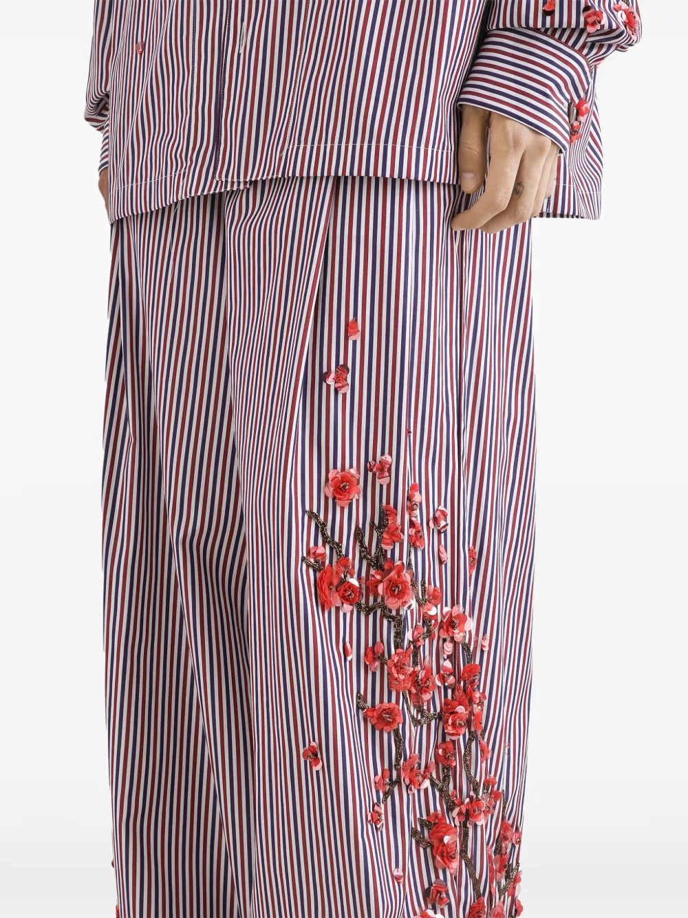 가벼움과 이탈리아 특유의 미학 그리고 꾸미지 않은 듯 자연스러운 스타일이 조화를 이루는 돌체앤가바나 2026 봄 여름 남성 컬렉션의 피스입니다. 파자마 룩을 컬렉션의 중심에 두어 실내와 실외의 경계를 허물고 예상을 뛰어넘는 조화로운 매칭을 선보입니다. 스트라이프 자카드 코튼 소재로 제작되었으며 가디건이나 재킷 및 화려한 장식의 피스와 함께 매치하여 세련된 앙상블을 완성하기 좋습니다. 우아함과 편안함을 동시에 갖춘 이 트라우저는 세련되면서도 여유로운 스타일을 연출하기에 더할 나위 없이 좋습니다. 정교한 자수 디테일과 파이핑 처리가 돋보이며, 전체적인 디자인에 한층 정제된 세련미를 더해줍니다.