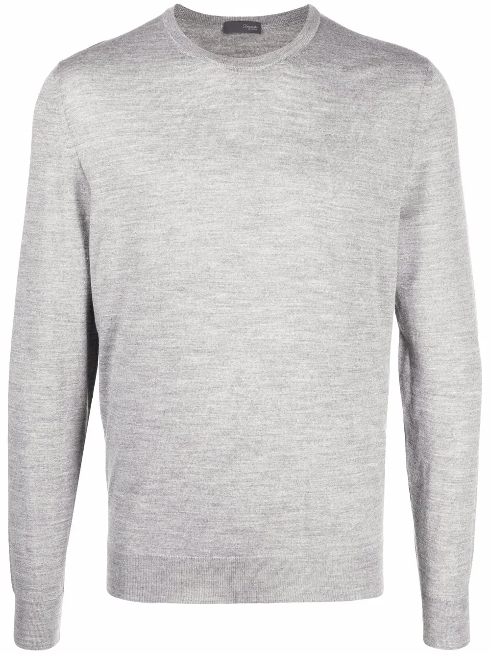 색상: 그레이. 골지 조직 디테일, 라운드 넥, 긴소매, 직선형의 밑단.