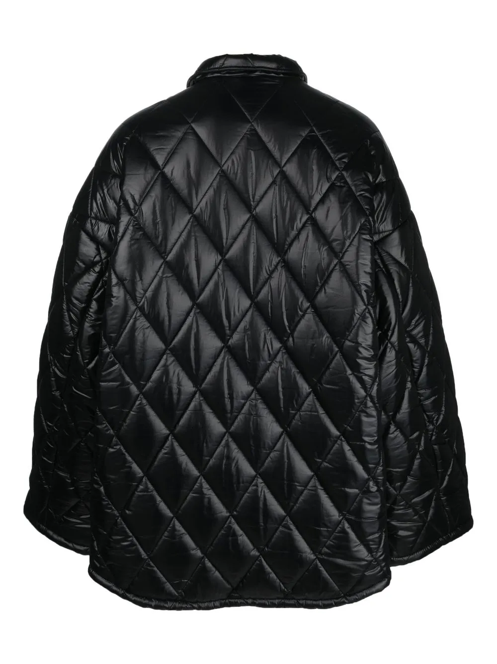 블랙, 코튼 혼방, 다이아몬드 퀼팅 디자인, 클래식 칼라, 앞면의 스냅 버튼으로 잠그는 형식, 옆면에 있는 두 개의 스냅 버튼 포켓.