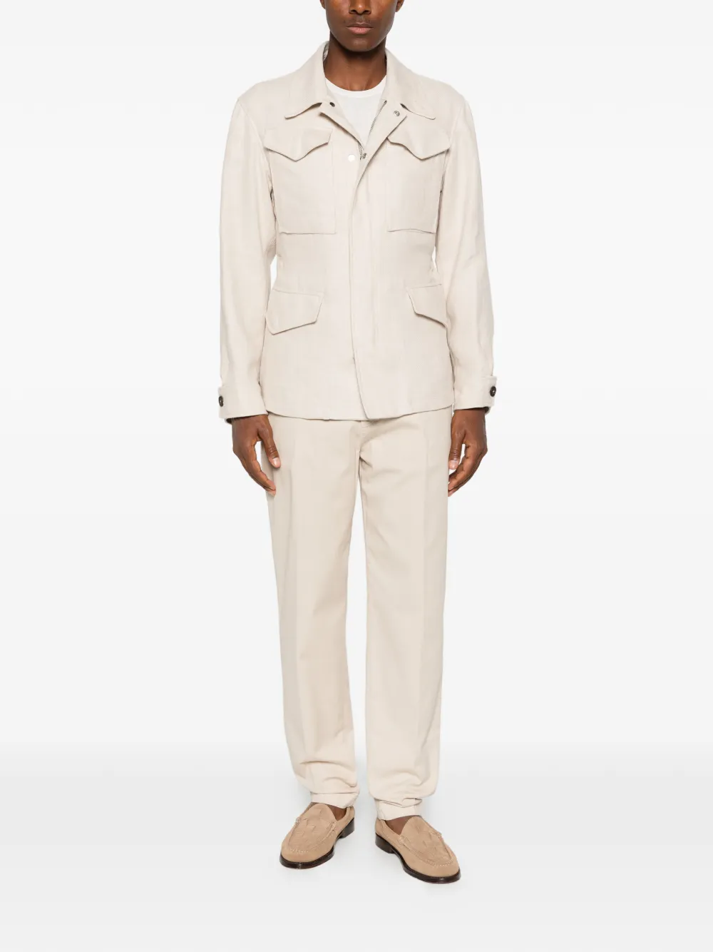 - 앞면의 버튼과 지퍼로 잠그는 형식