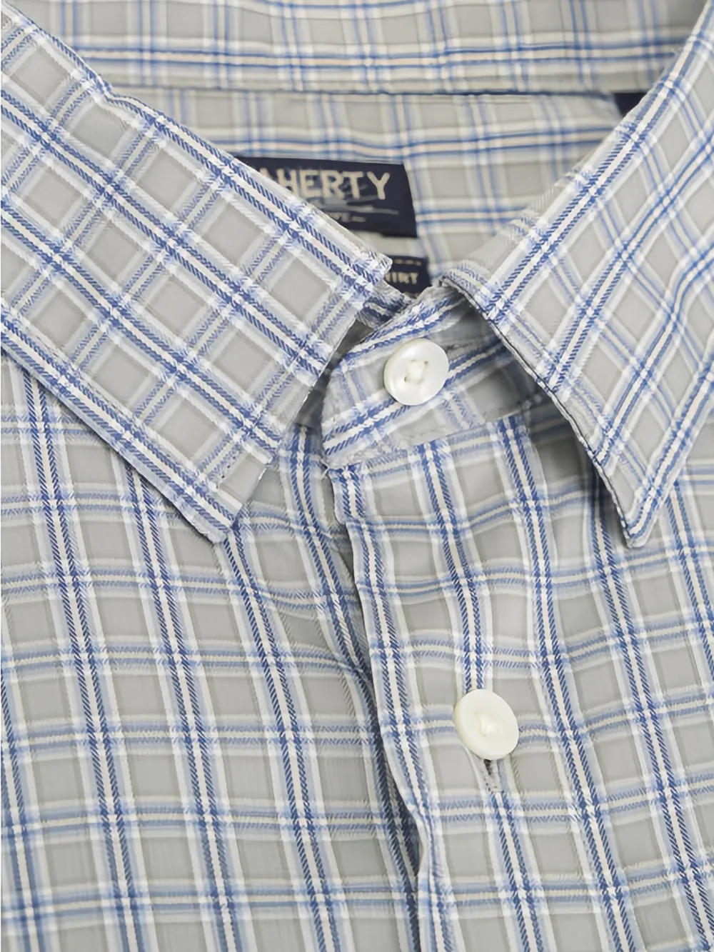 grey and blue check pattern button fastening classic collar long sleeves buttoned cuffs