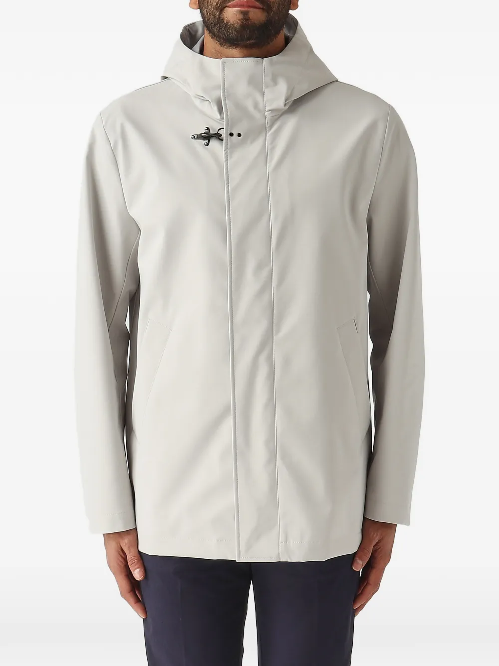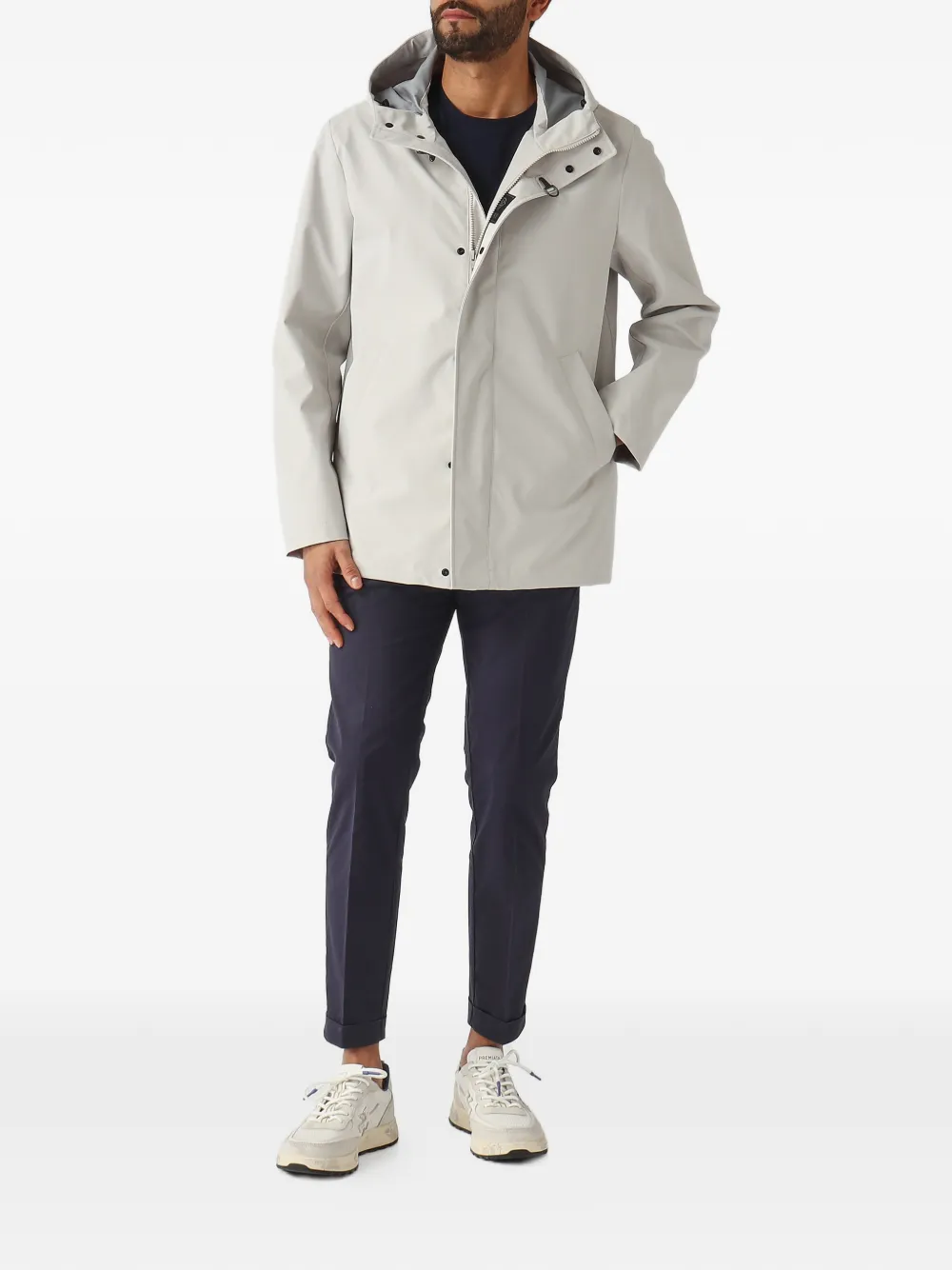 - 숨겨진 앞면 지퍼와 프레스 스터드로 잠그는 스타일