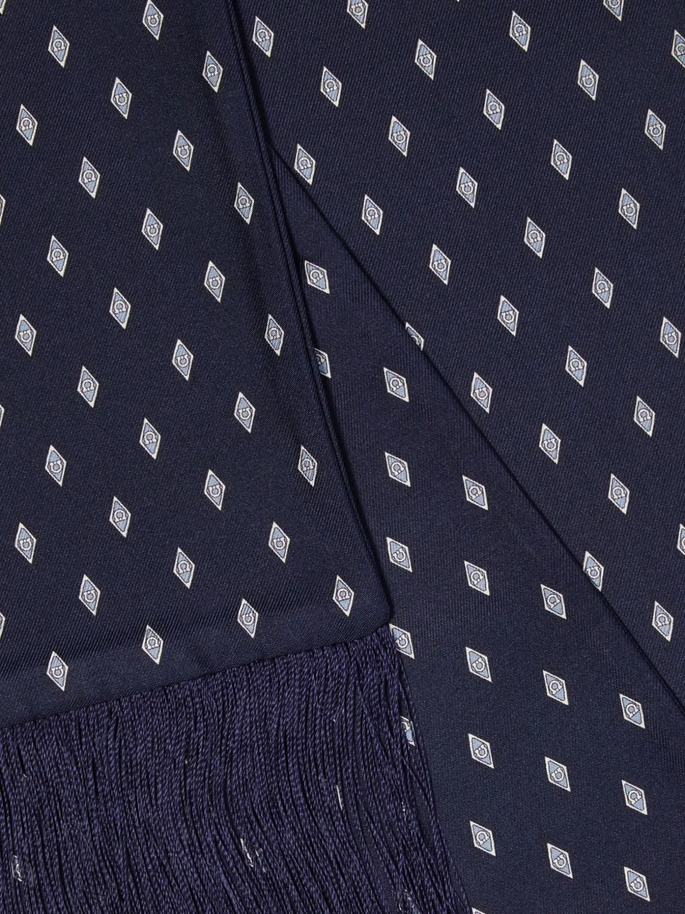 유연한 실크 소재와 길게 늘어진 프린지 장식이 우아한 움직임을 선사하며, 절제된 세련미를 자아내는 피스입니다. 마이크로 다이아몬드와 간치니 프린트가 브랜드의 정체성을 은은하면서도 섬세하게 드러냅니다.
