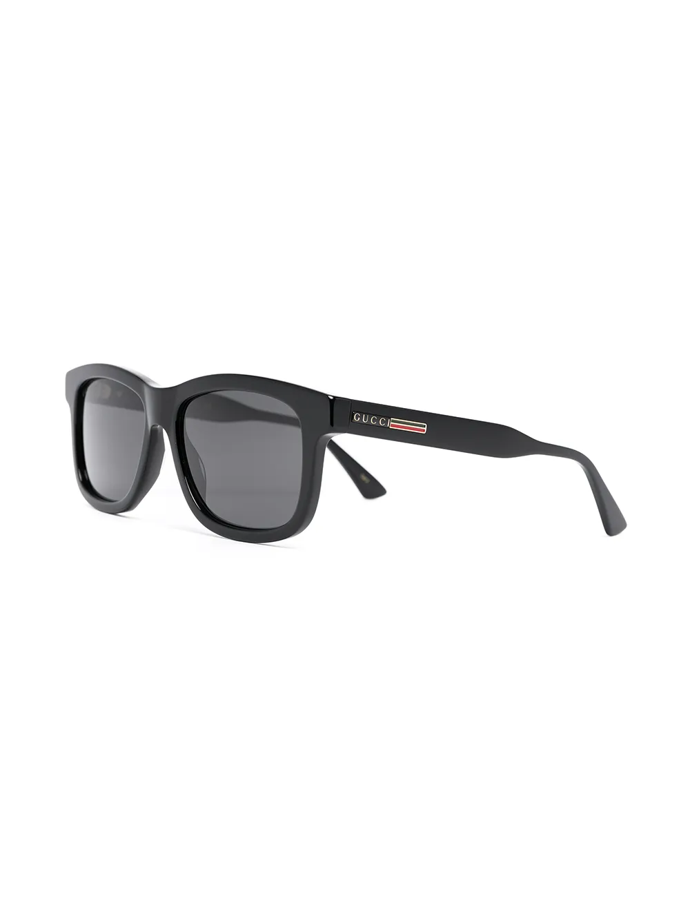 색상: 블랙. 사각 프레임, 틴트 렌즈, 끝을 구부린 디자인, 로고 플라크 안경 다리. 보호 케이스가 포함된 상품입니다.