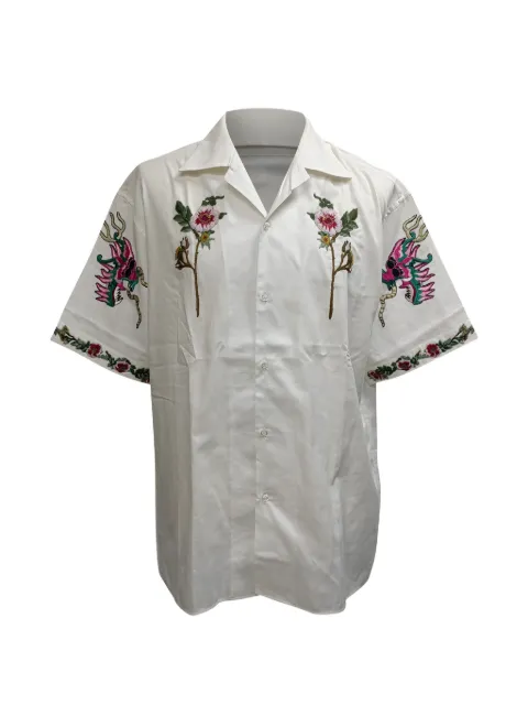 Floral-embroidered button-down shirt