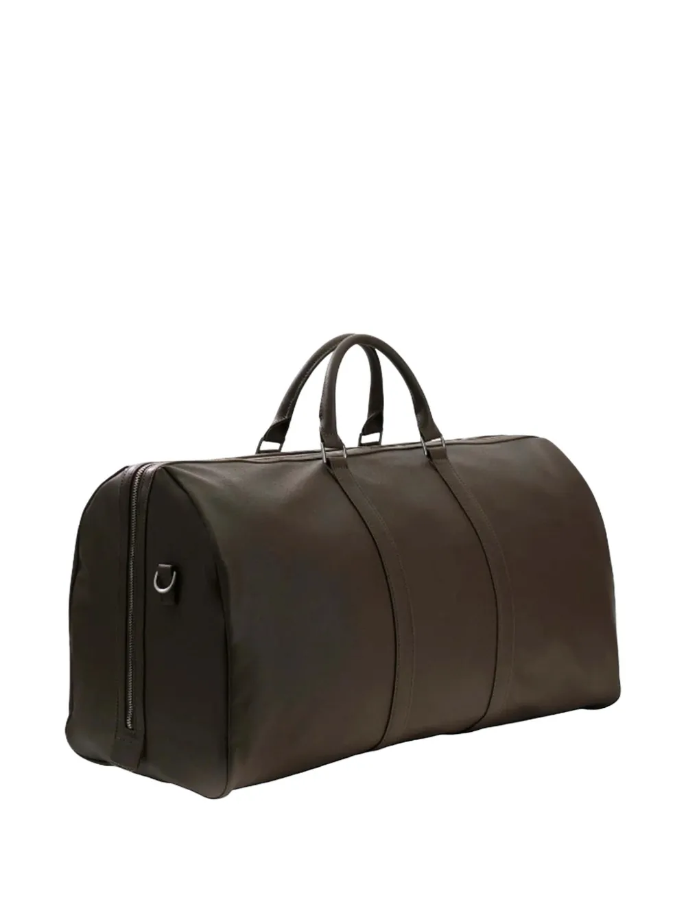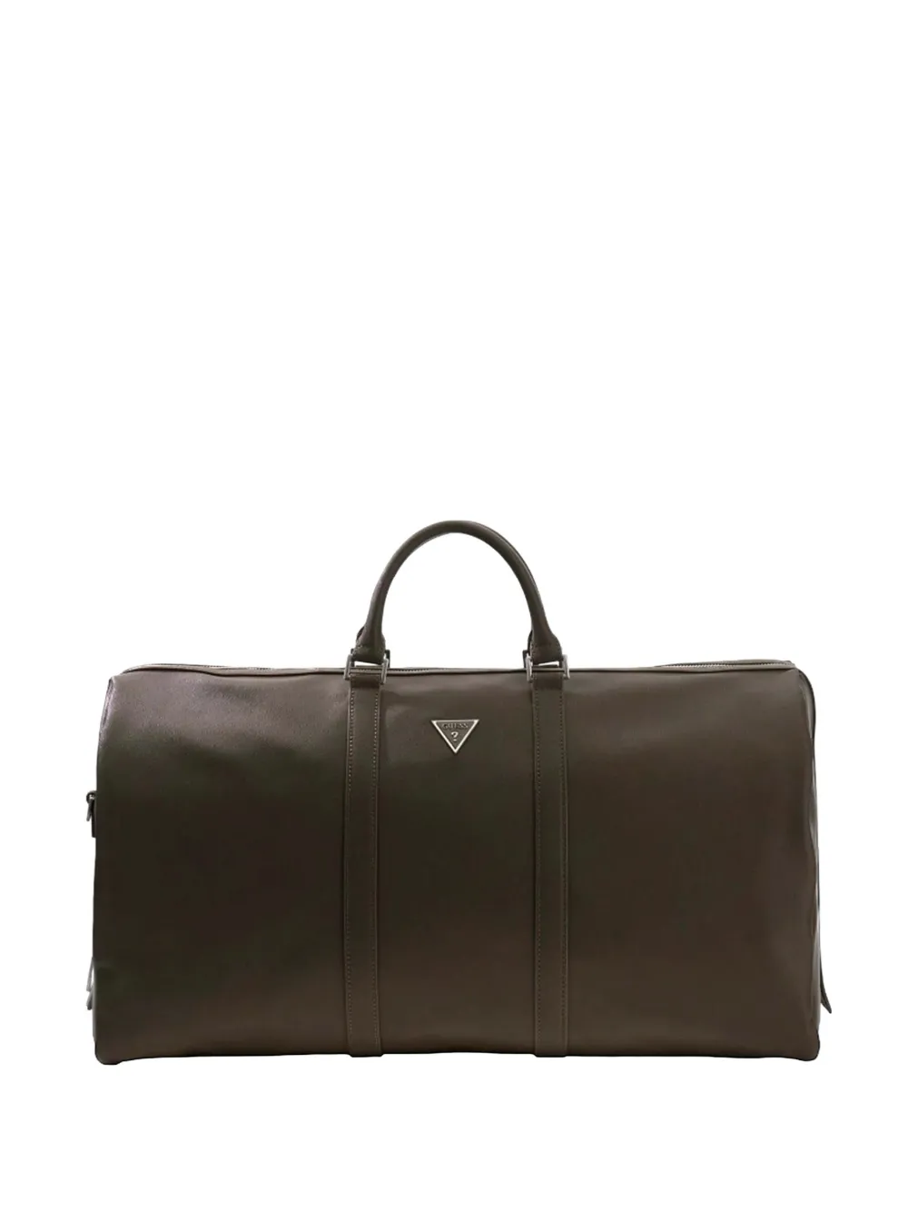 brown grained texture logo plaque two rounded top handles adjustable and detachable shoulder strap top zip fastening silver-tone hardware