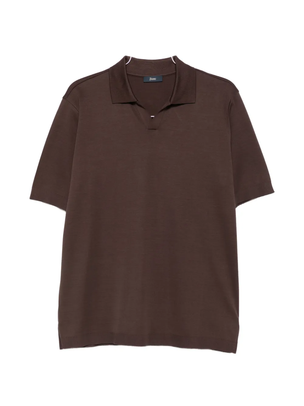 브라운 색상 스프레드 칼라 반소매 골지 커프스 골지 밑단 직선형의 밑단