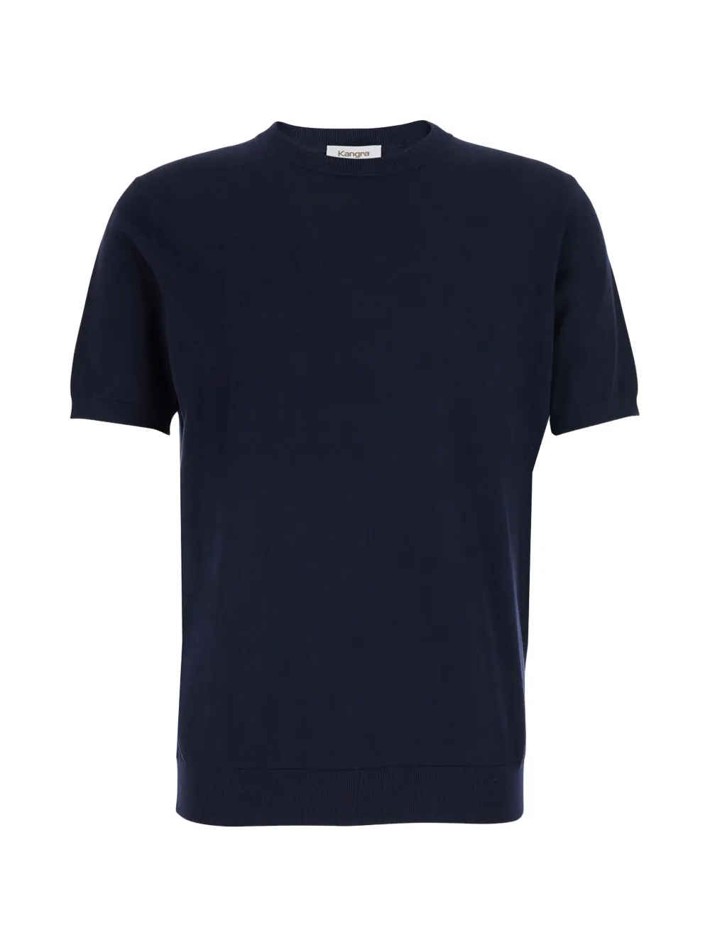 blue short sleeves ribbed hem ribbed crew neck