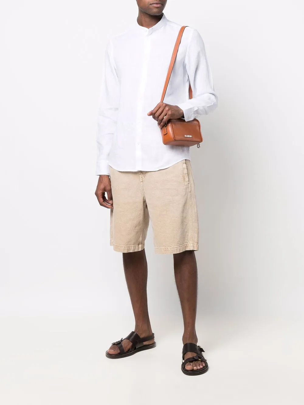 칼라가 없는 디자인, 앞면의 버튼으로 잠그는 형식, 긴소매, 둥근 밑단. POSITIVELY CONSCIOUS: 친환경 인증을 받은 소재 또는 환경에 부담을 덜어낸 소재를 최소 50% 이상 사용하여 제작한 지구를 생각하는 상품입니다..