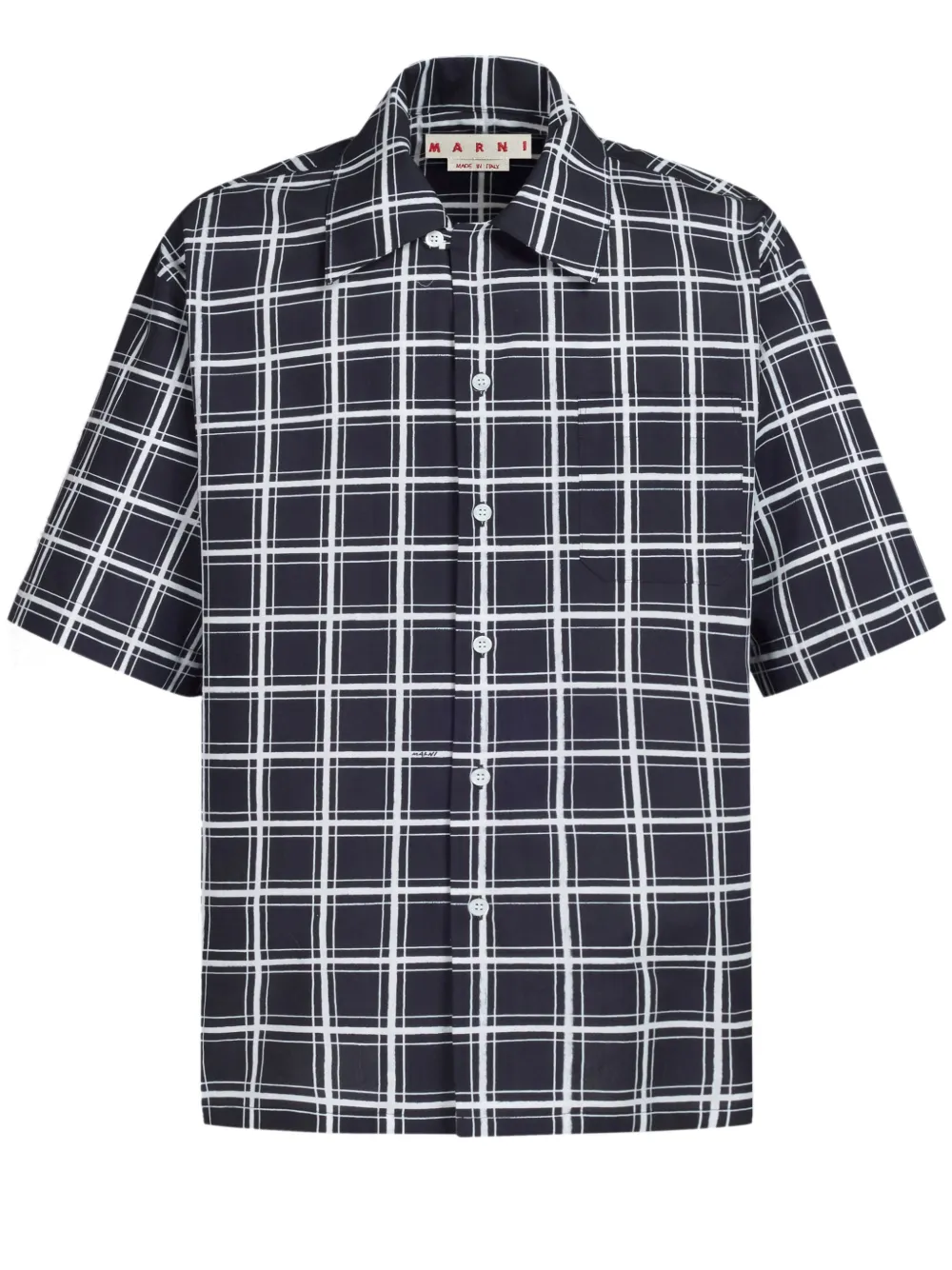 블랙, 화이트, 코튼, 그리드 패턴, 스프레드 칼라, 앞면의 버튼으로 잠그는 형식, 반소매, 직선형의 밑단.