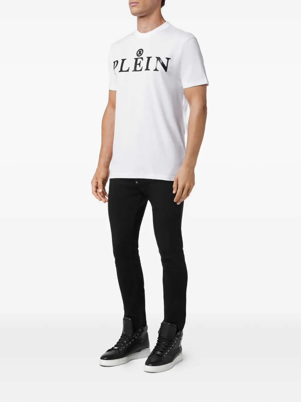 색상: 화이트. 가슴의 로고 프린트, 앞면의 슬로건 프린트, 뒷면의 로고 패치, 라운드 넥, 반소매. 유니섹스 아이템으로, 남성 사이즈 기준으로 판매됩니다.