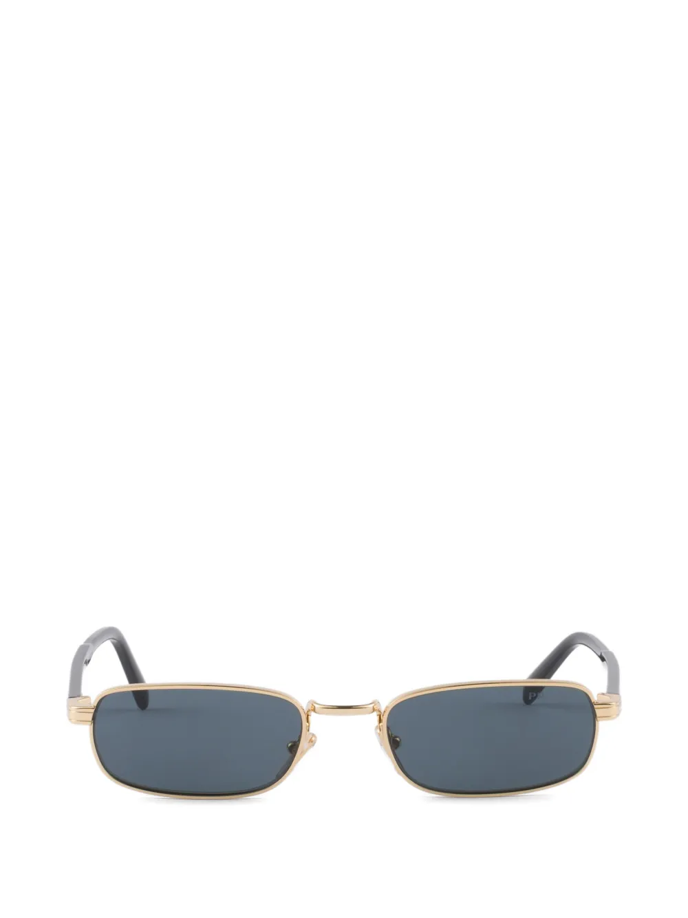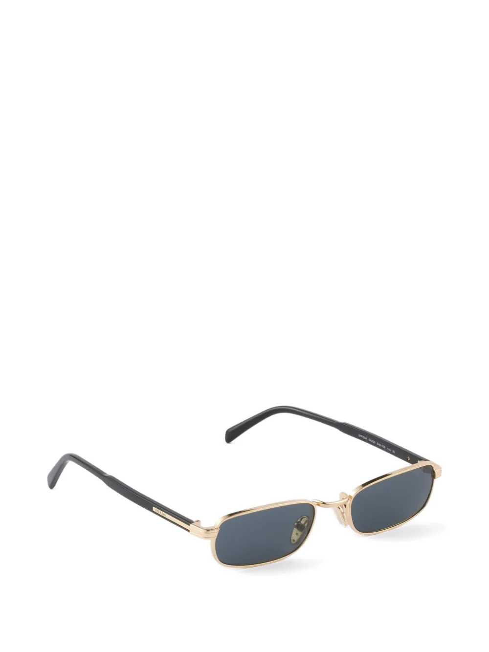 현대적이고 미니멀한 디자인의 메탈 선글라스입니다. 세련된 미학이 느껴지는 직사각형 프레임이 특징이며, 템플 부분은 로고가 정교하게 각인된 아이코닉한 메탈 요소로 장식되었습니다.
