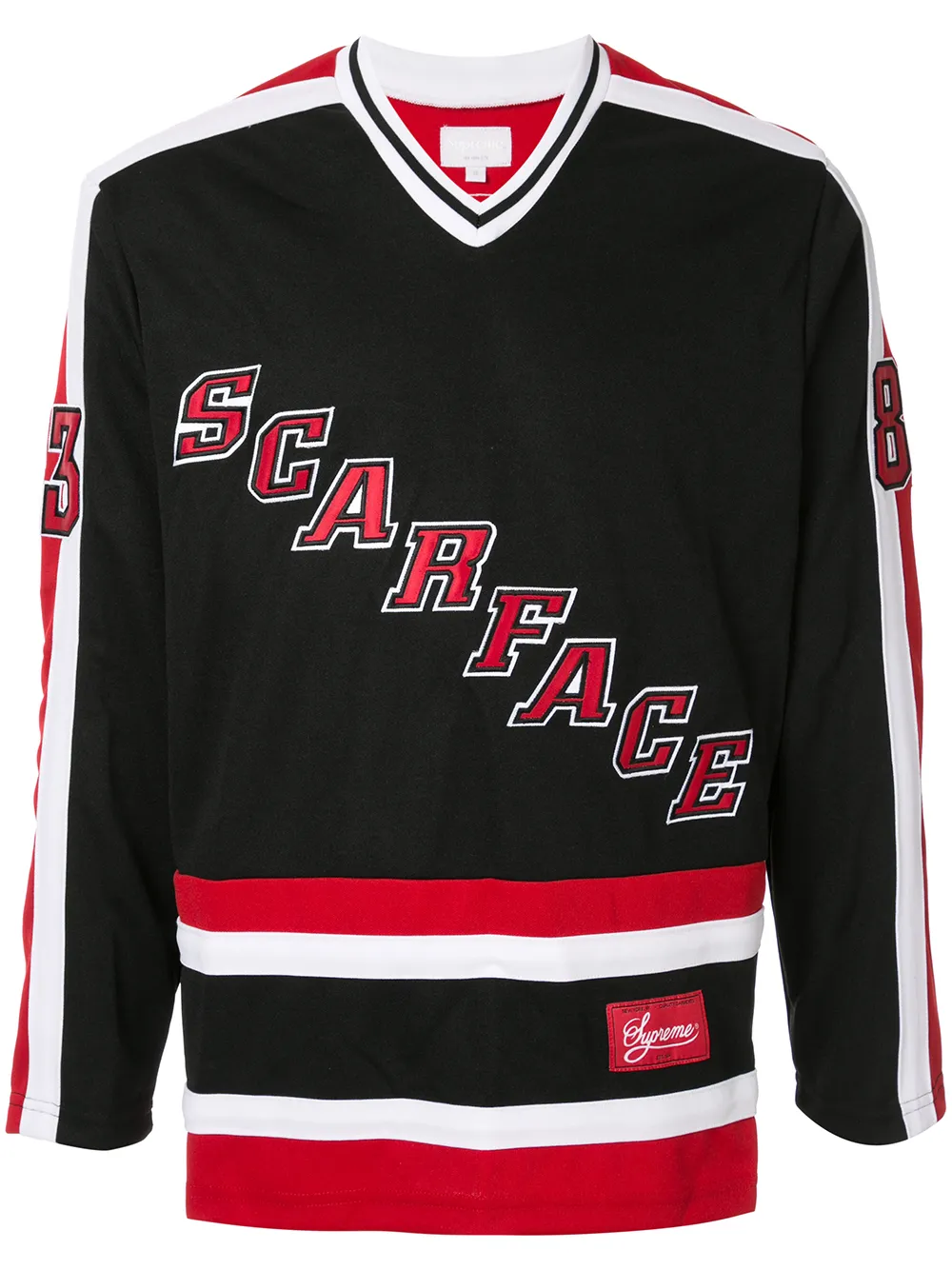 supreme(슈프림)의 스카페이스 하키 저지 탑. V-넥, 긴소매, 컬러 블록 패널 디자인, 편안한 핏, 스트레이트 헴. 스타디움 굿즈의 상품들은 다양한 프리미엄 스니커즈와 스트리트웨어 스토어들을 통해 입고됩니다. 전 세계에서 가장 많은 사랑을 받고 있는 스테디셀러부터 가장 구하기 힘든 한정판 스니커즈와 의류 셀렉션을 만나보세요.