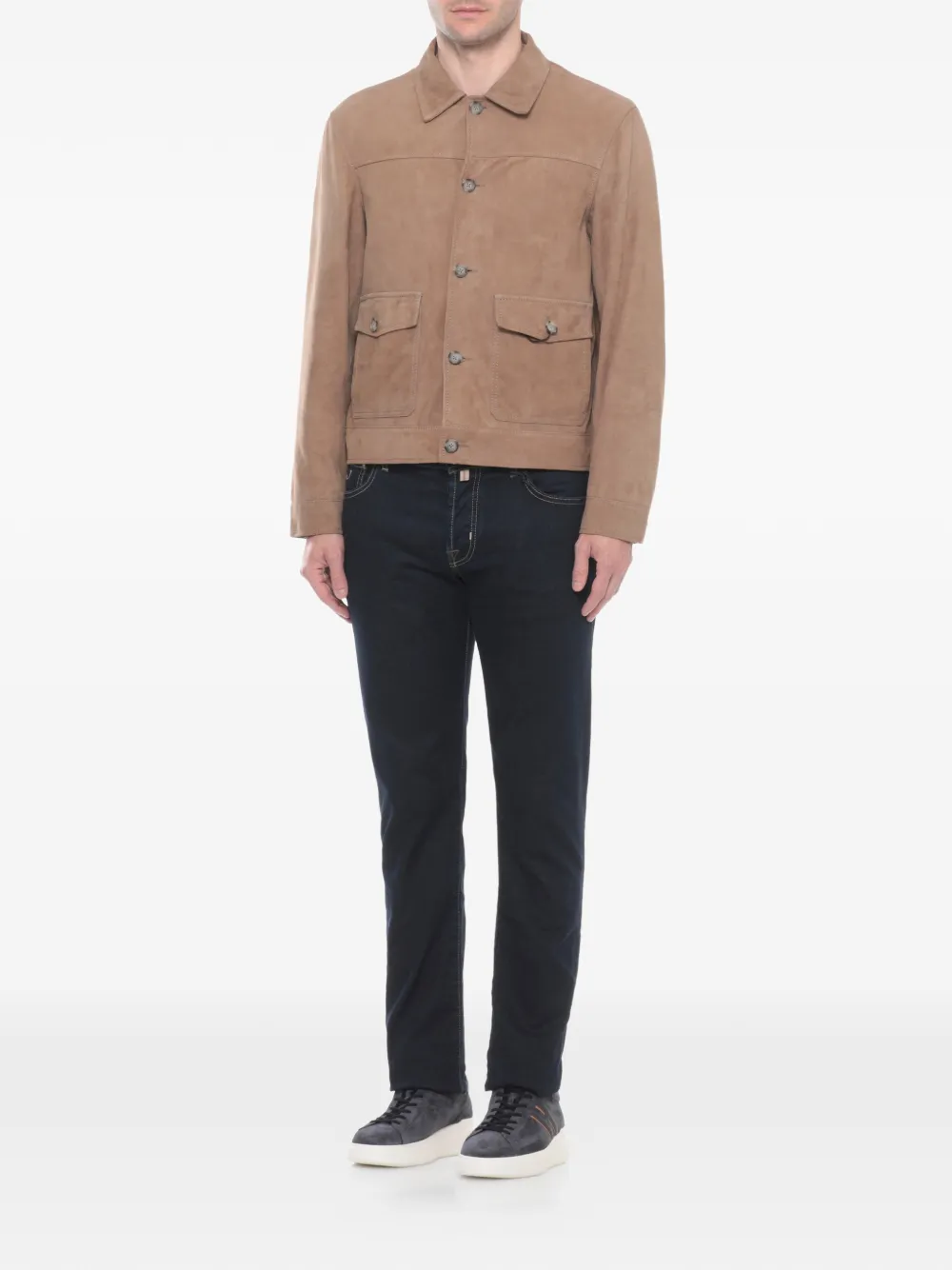 - 앞쪽 버튼으로 잠그는 플랩 포켓 2개