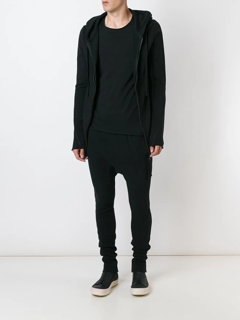 Thom Krom의 리브드 드롭 크로치 팬츠. 블랙 색상, 코튼 소재.