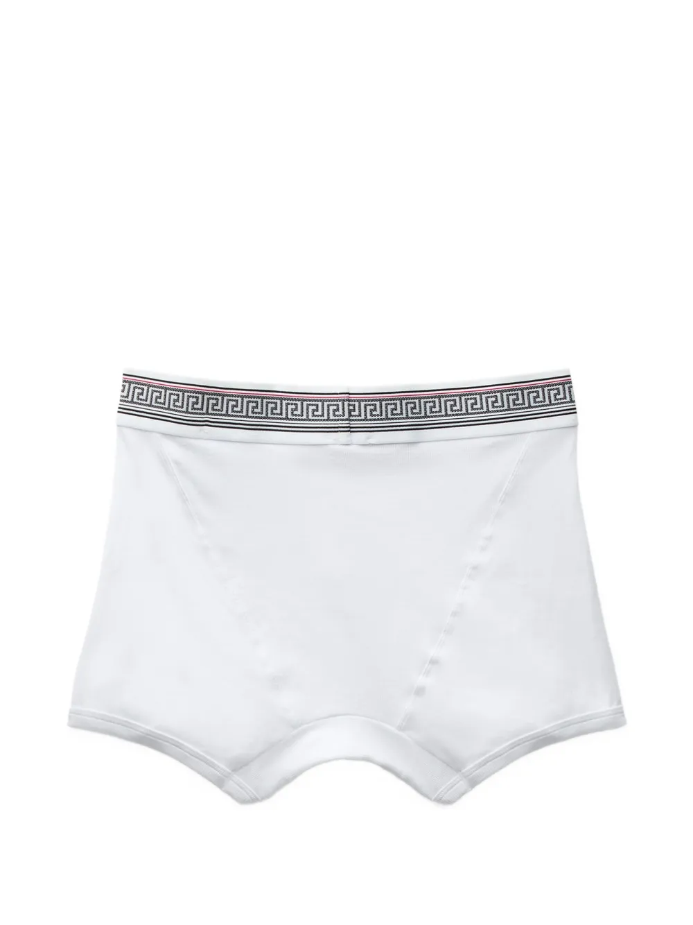 이 리브드 코튼 저지 트렁크는 자카드 그리스 문양과 베르사체 로고 모티프를 더한 밴딩 웨이스트밴드가 특징입니다. 위생을 위해 시착 시에는 개인 속옷 위에 착용해 주시길 권장합니다.