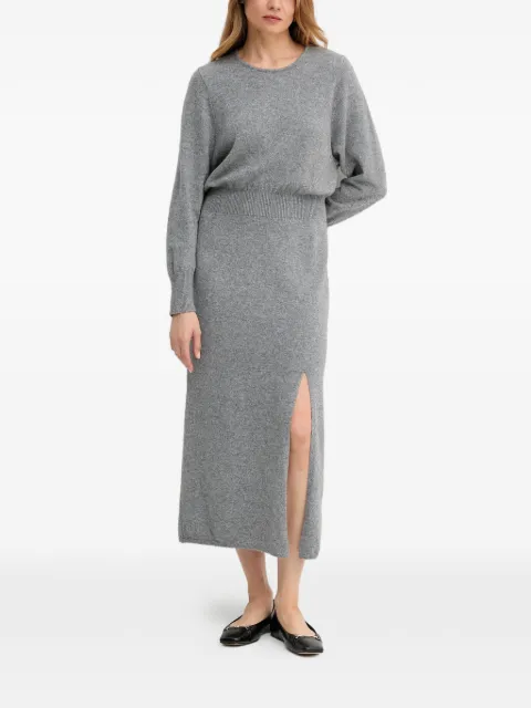골지 니트 슬릿 디테일 미디 드레스