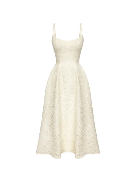 고데 실루엣 스퀘어 넥 미디 드레스