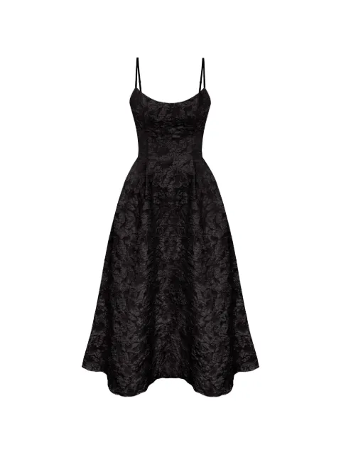 자카드 새틴 패널 미디 드레스