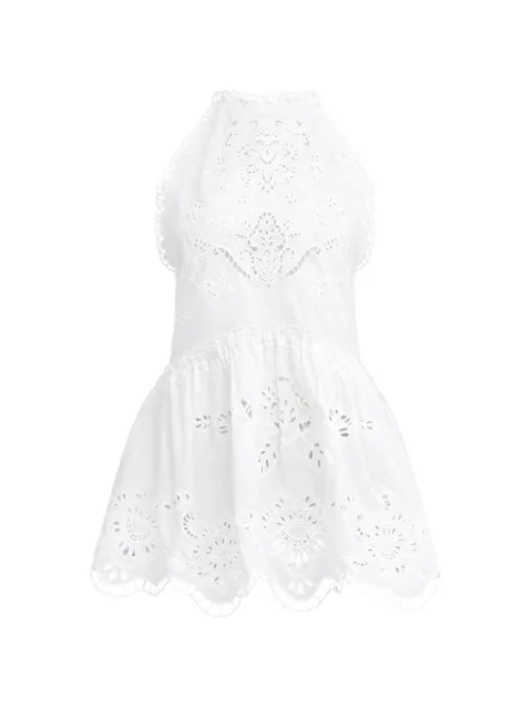 자수 아일렛 홀터넥 미디 드레스