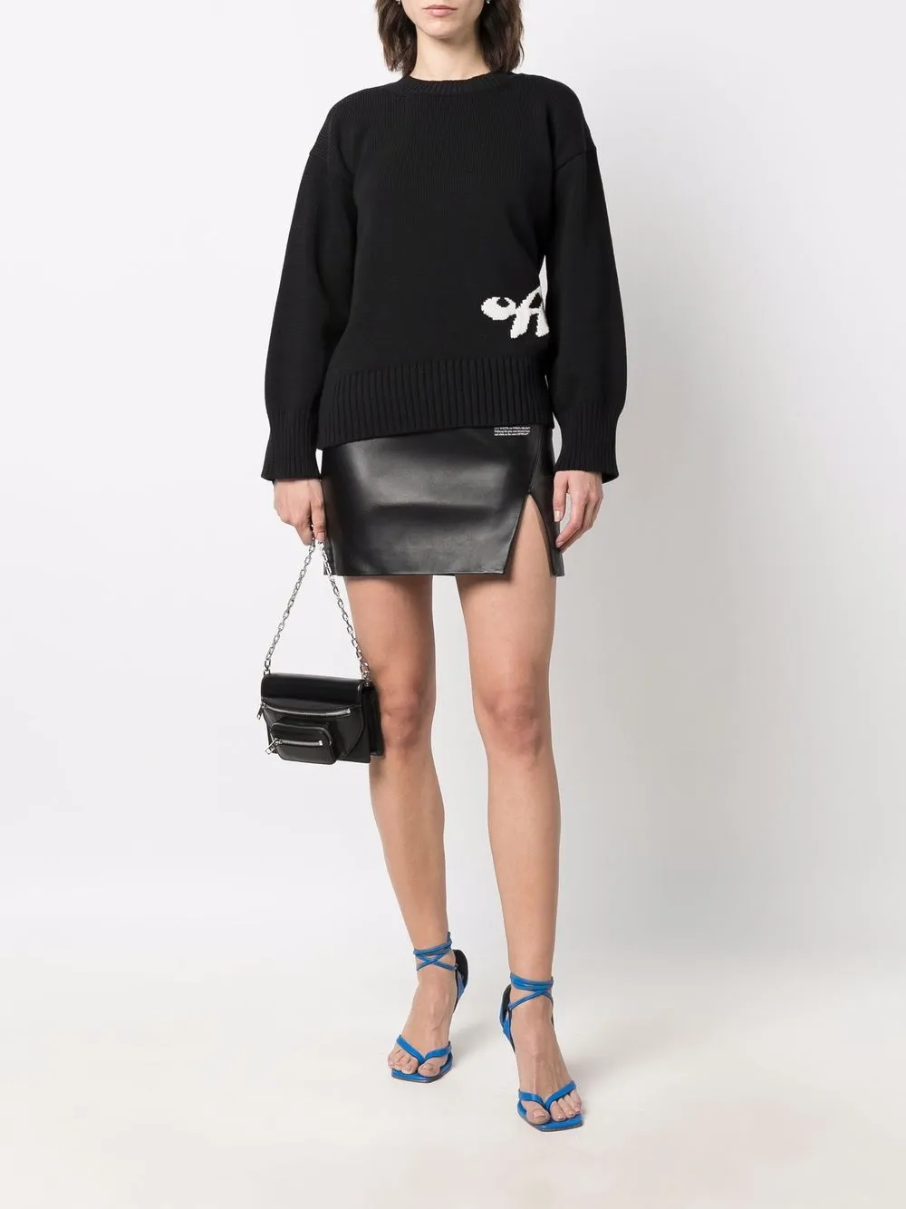 오프화이트 슬릿 디테일 하이웨이스트 가죽 스커트