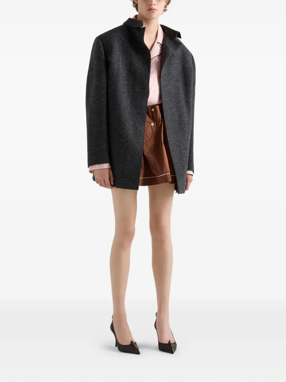 정교한 테일러링과 예상치 못한 불완전함의 미학이 어우러져 의상을 착용하는 새로운 방식과 비율을 제안합니다. 이 재킷은 셔틀랜드 울 소재로 제작되었으며, 간결하고 정교한 구조에 리버스 칼라 디테일을 더해 제품에 독특하고 모던한 개성을 부여했습니다.