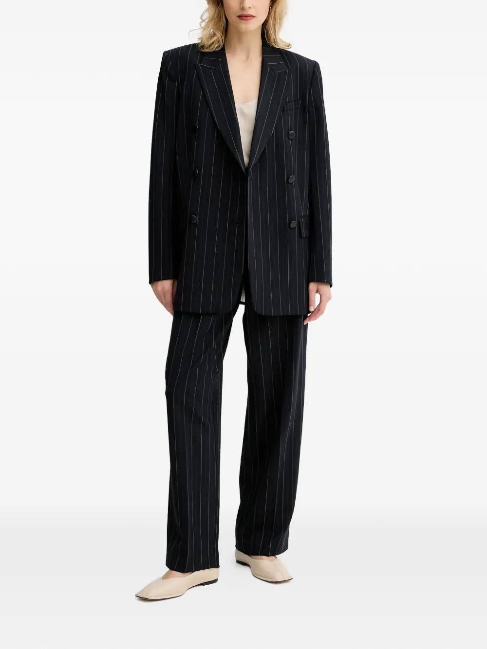 핀스트라이프 더블 브레스티드 블레이저