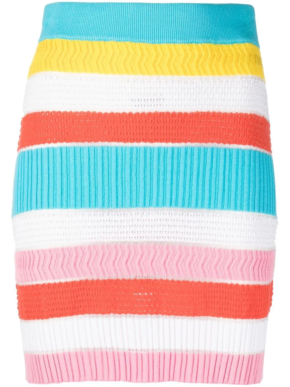 멀티컬러, 스트레치 코튼, 밝은 스트라이프 패턴, 텍스처 마감, 골지 조직 디테일.