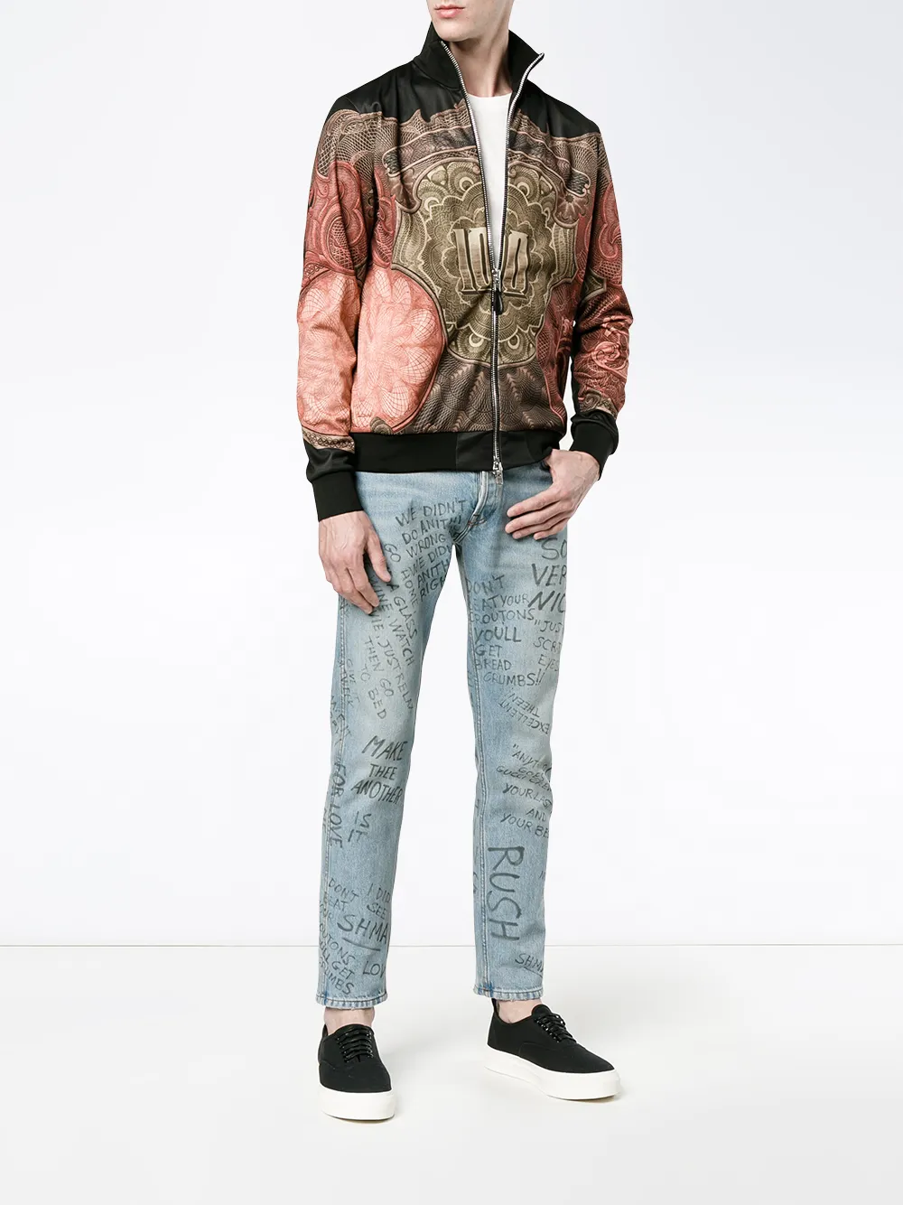 Crafted from a cotton blend, this multicoloured lightweight jacket from Givenchy stands out with its black base and colourful statement print positioned to the front. Complete with a front zip fastening, long sleeves and an elasticated hem, this Givenchy design is sure to wake up everyday ensembles fast.