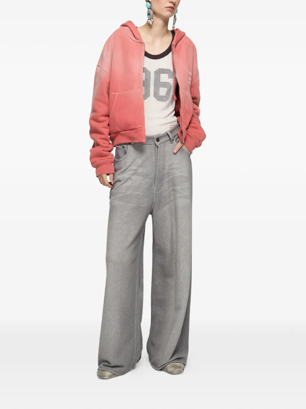 Acne Studios худи на молнии с эффектом потертости