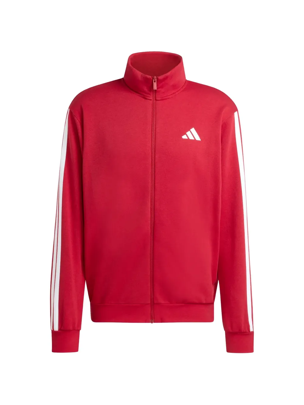 red three-stripe detailing logo detail high neck zip-up fastening side slit pockets elasticated cuffs and hem