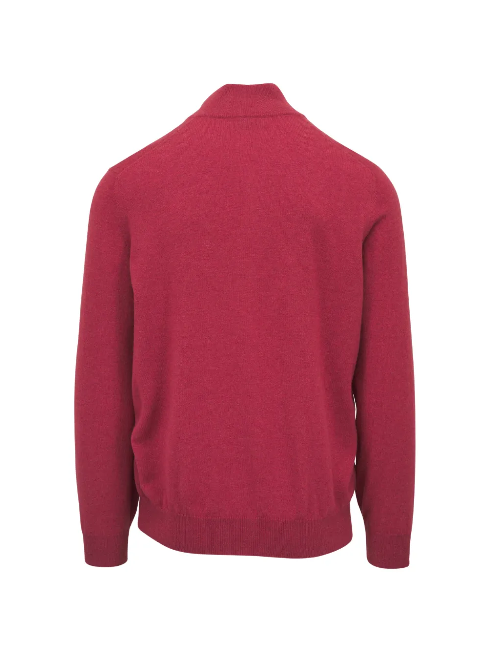 red cashmere high neck short front zip fastening long sleeves ribbed cuffs ribbed hem