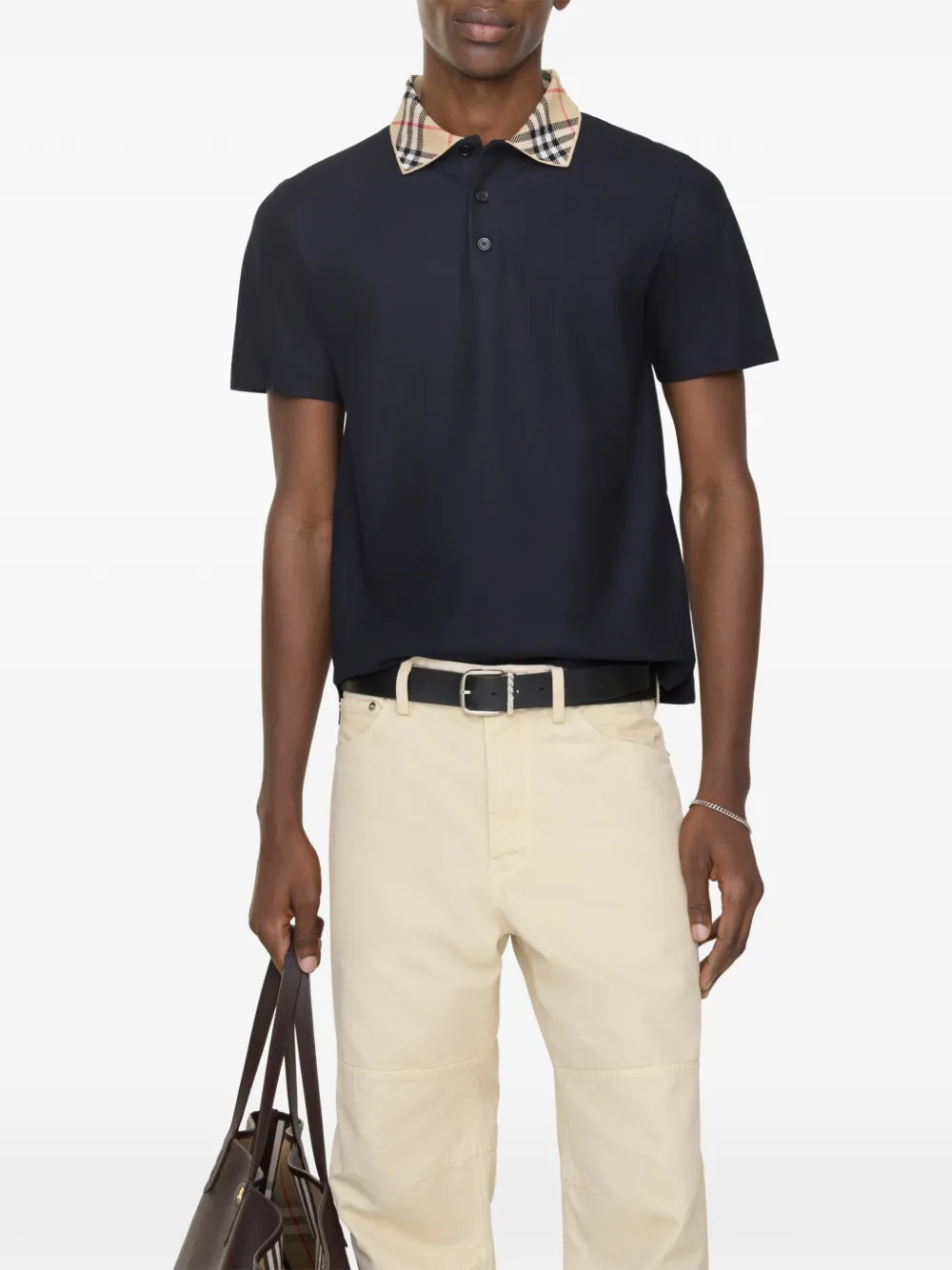 Рубашка поло из ткани пике. Приталенный крой, воротник украшен узором Burberry Check в фирменном цвете sand beige.