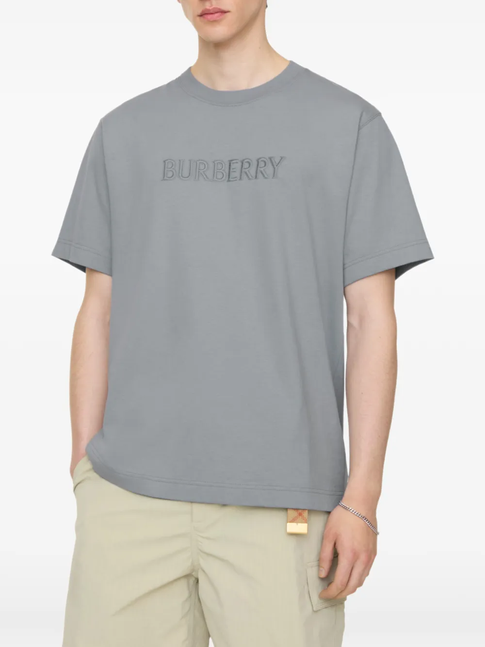 Футболка с круглым вырезом свободного кроя из хлопкового джерси средней плотности. Модель украшена выпуклым логотипом в тональной вышивке.