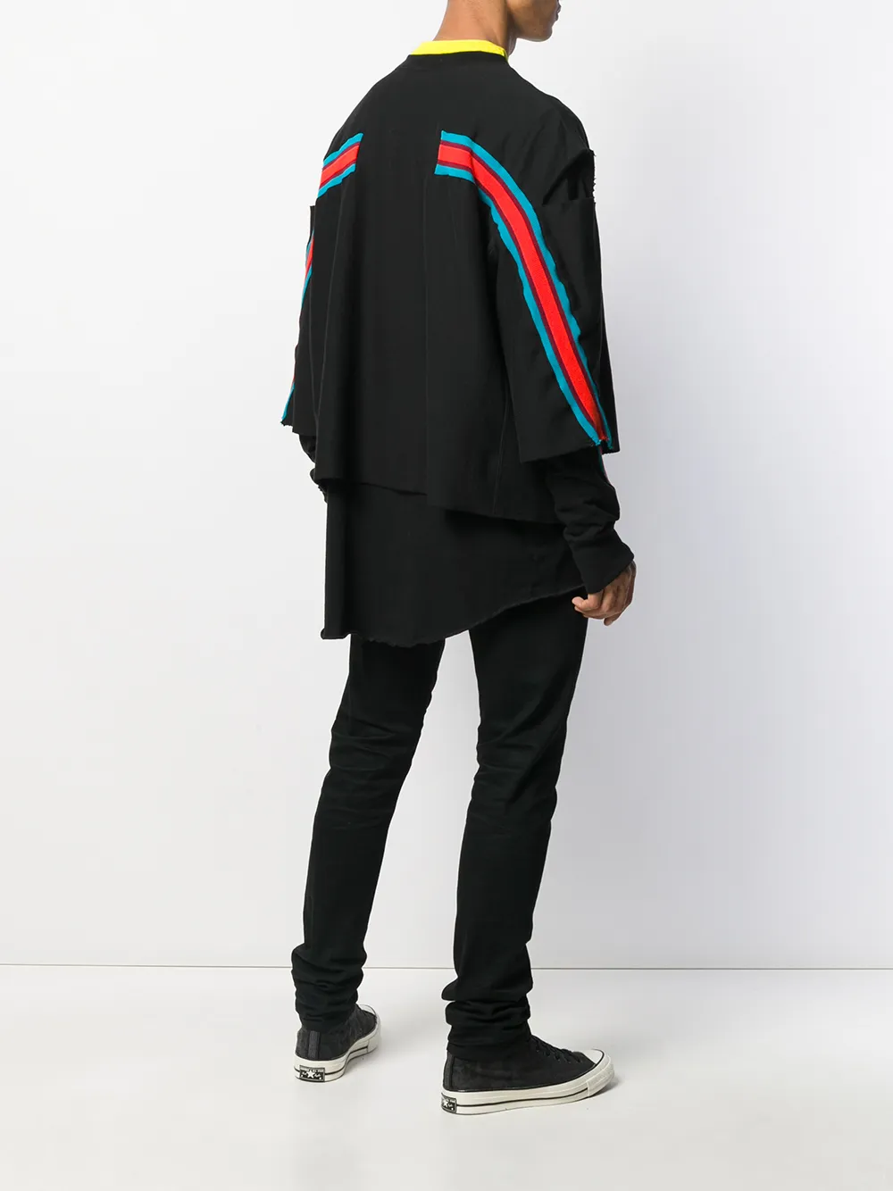 Многослойная футболка от Facetasm. Круглый вырез, длинные рукава, эффект потертости, многослойный дизайн и полосатый узор. Цвет: черный.