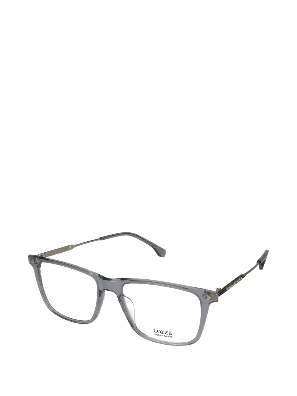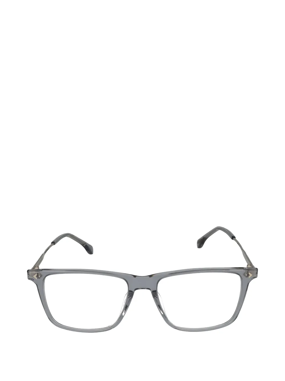 grey transparent finish rectangle frame clear lenses logo-engraved arms curved tips nose pads All glasses from FARFETCH are sold as non-prescription frames. These glasses come with a protective case.