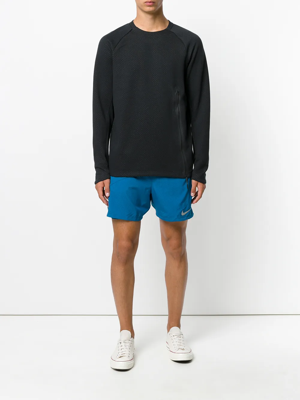 Черная флисовая толстовка 'Nike Sportswear' из хлопкового микса от Nike(Найк). Круглый вырез под горло в рубчик, длинные рукава реглан, боковая молния, принт с логотипом.