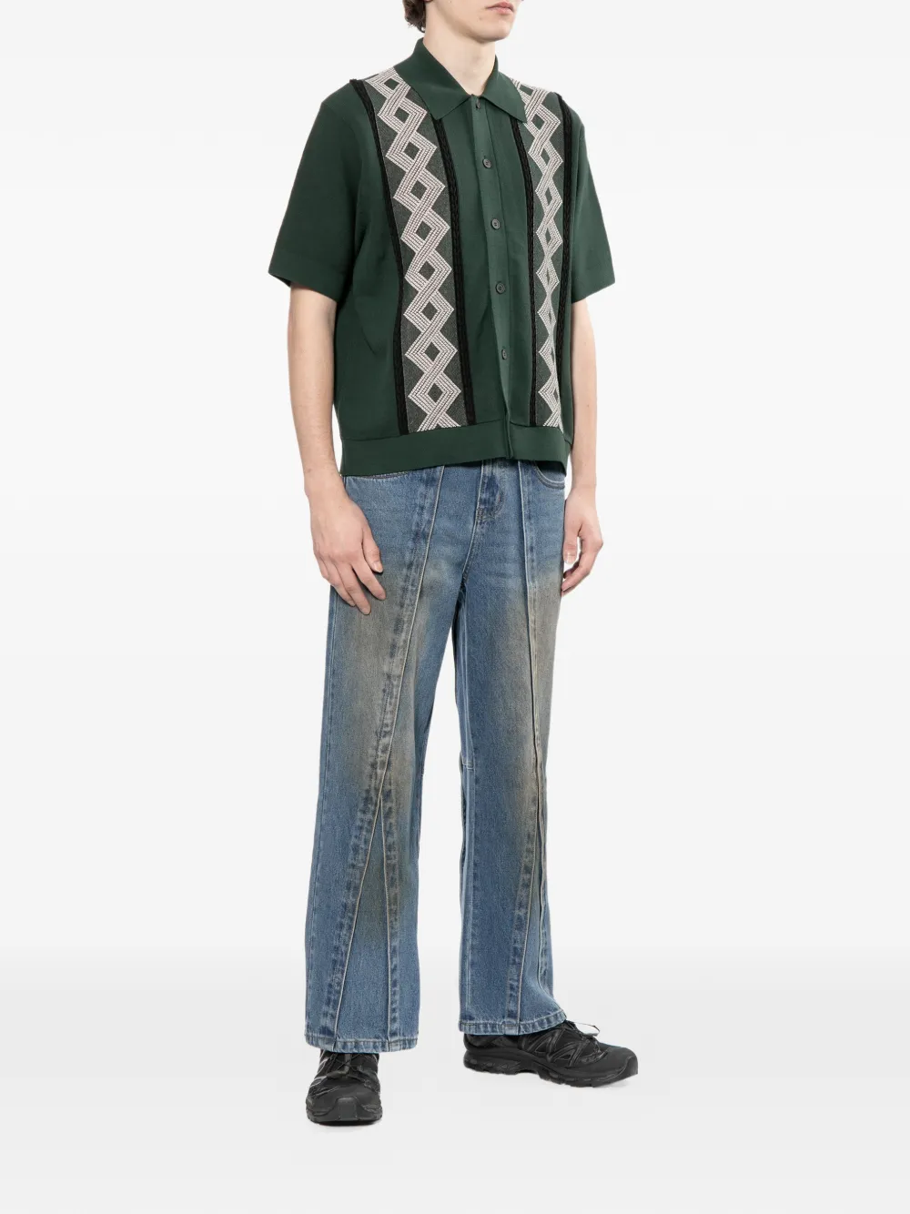кардиган с короткими рукавами и геометричным узором