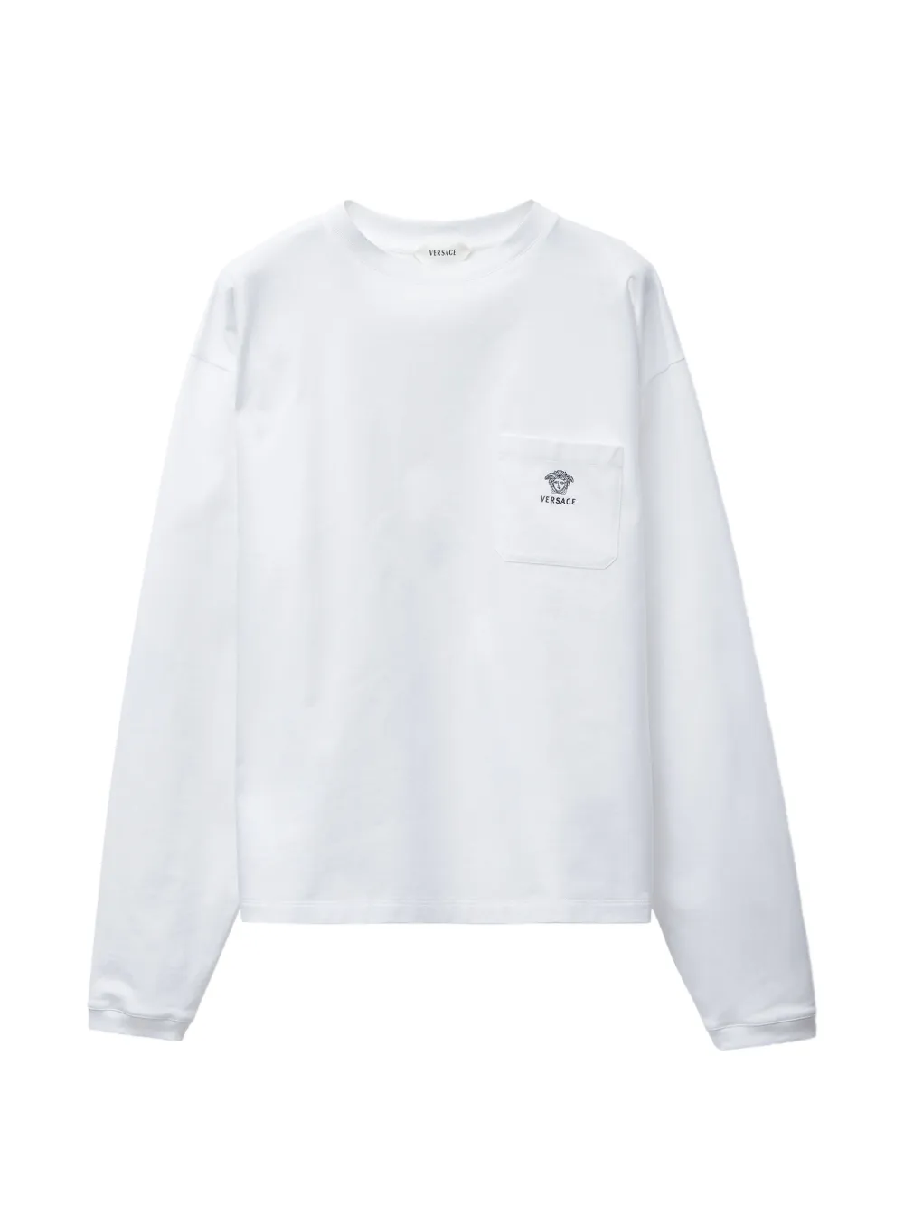 Футболка с длинными рукавами из плотного хлопкового джерси с вышивкой логотипа Versace и Medusa на нагрудном кармане.