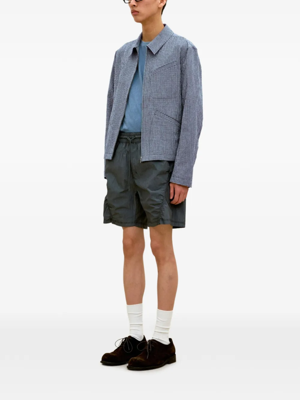 blue check pattern zip fastening chest pocket flap pockets collar