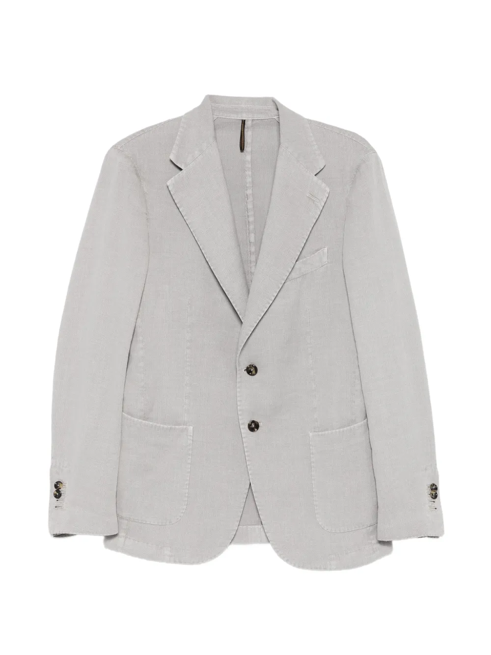 grey notched lapels button fastening patch pockets long sleeves