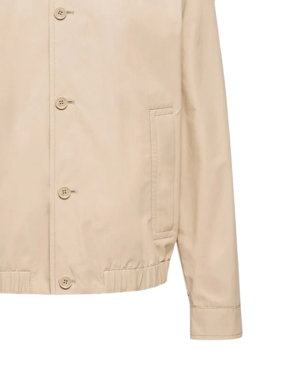 light beige button closure welt pockets collar long sleeves leather tag