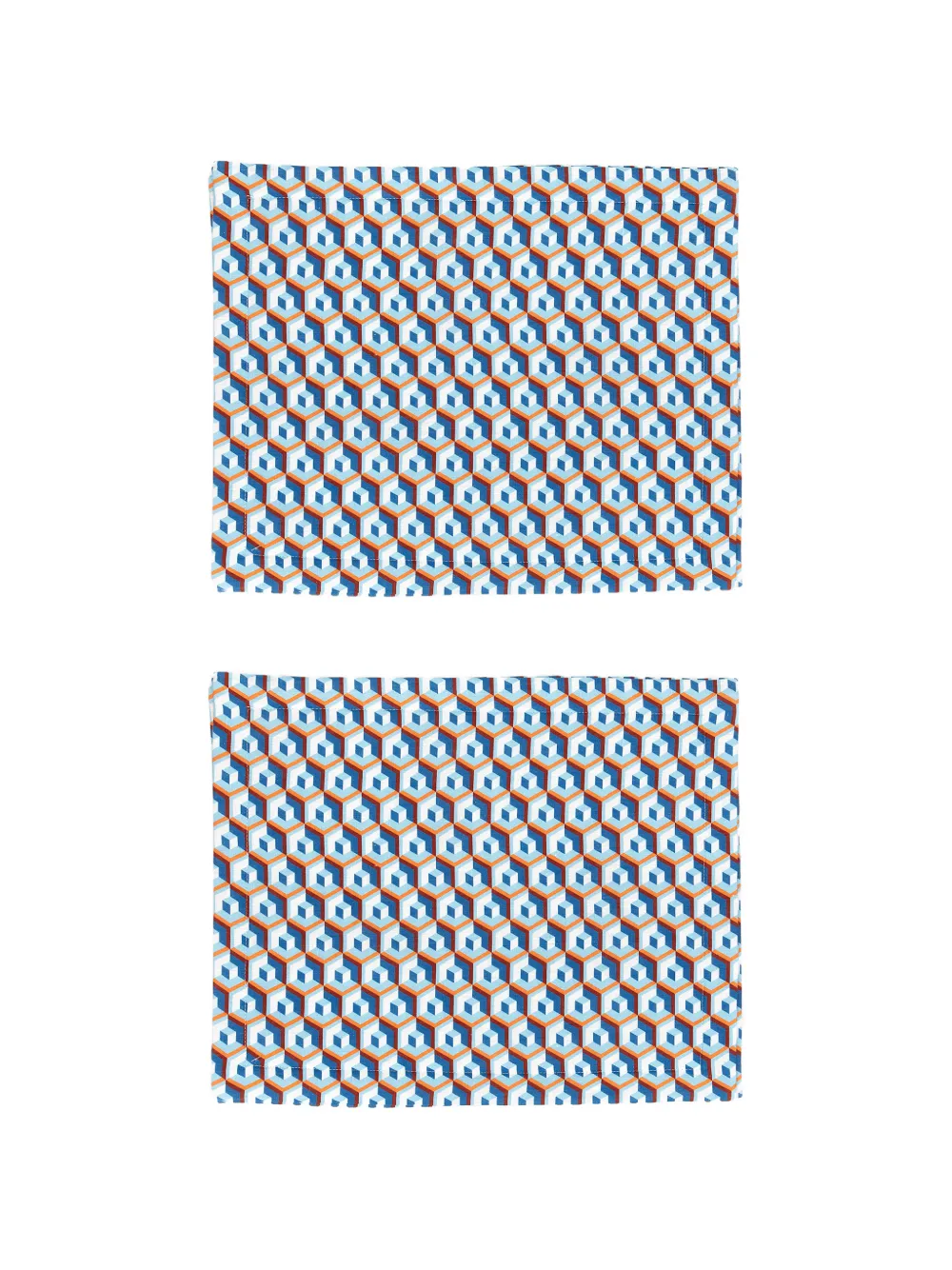 blue geometric pattern set of two tonal stitching square shape all-over pattern